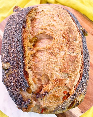 Our menu changes weekly, featuring unique and flavorful loaves like the zesty Cheddar Jalapeño Sourdough, the nutty Seeded Red Fife, and the sweet Cherry & Toasted Pecan Sourdough. Every loaf is crafted with organic, locally sourced, stone-milled flours for exceptional quality and taste.